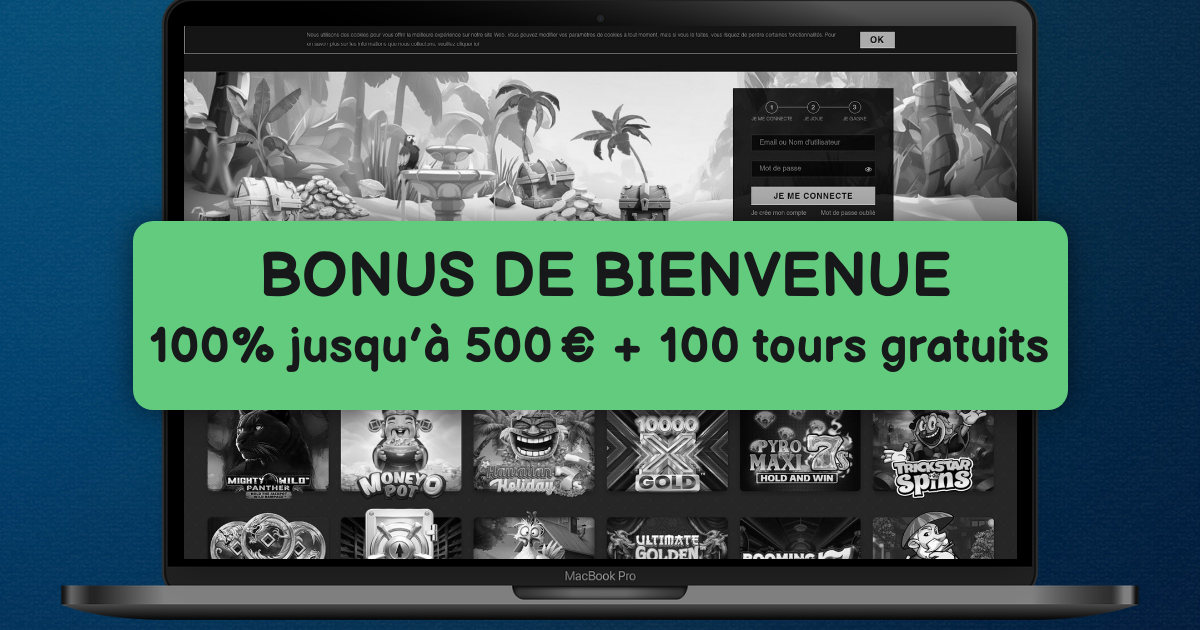 Le pack de bienvenue peut atteindre 1 000 € et 300 tours gratuits répartis sur les trois premiers dépôts. Il faut activer chaque bonus dans la section dédiée avant de jouer et respecter les conditions de mise indiquées.